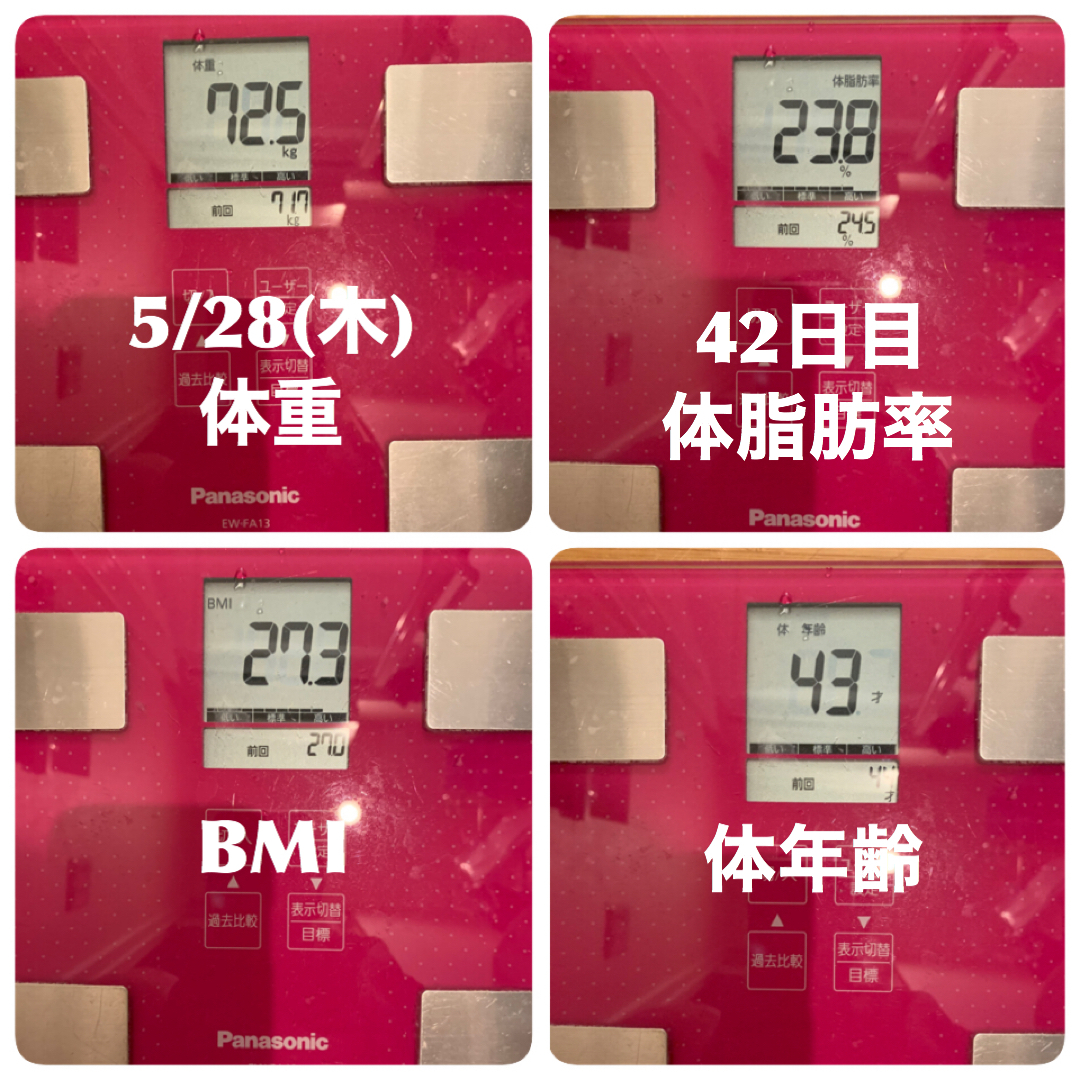 - 【3年ぶりサプリダイエット生活42日目】