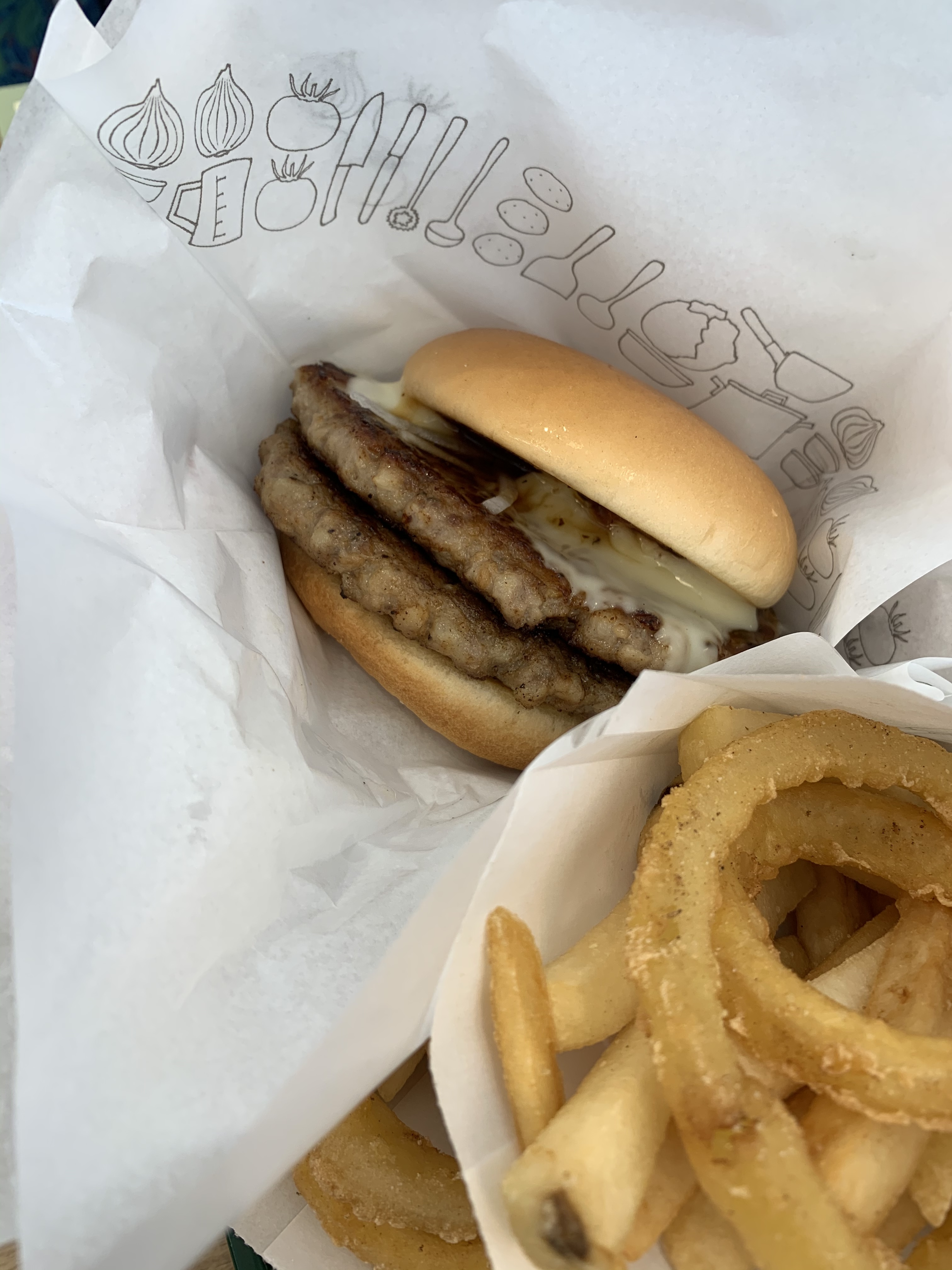 お昼は、モスのダブルとびきりチーズバーガー、オニポテセットを食べても全てマイナス!!