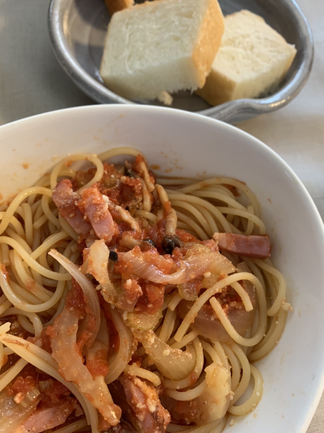 昨日のお昼は、パスタとパン