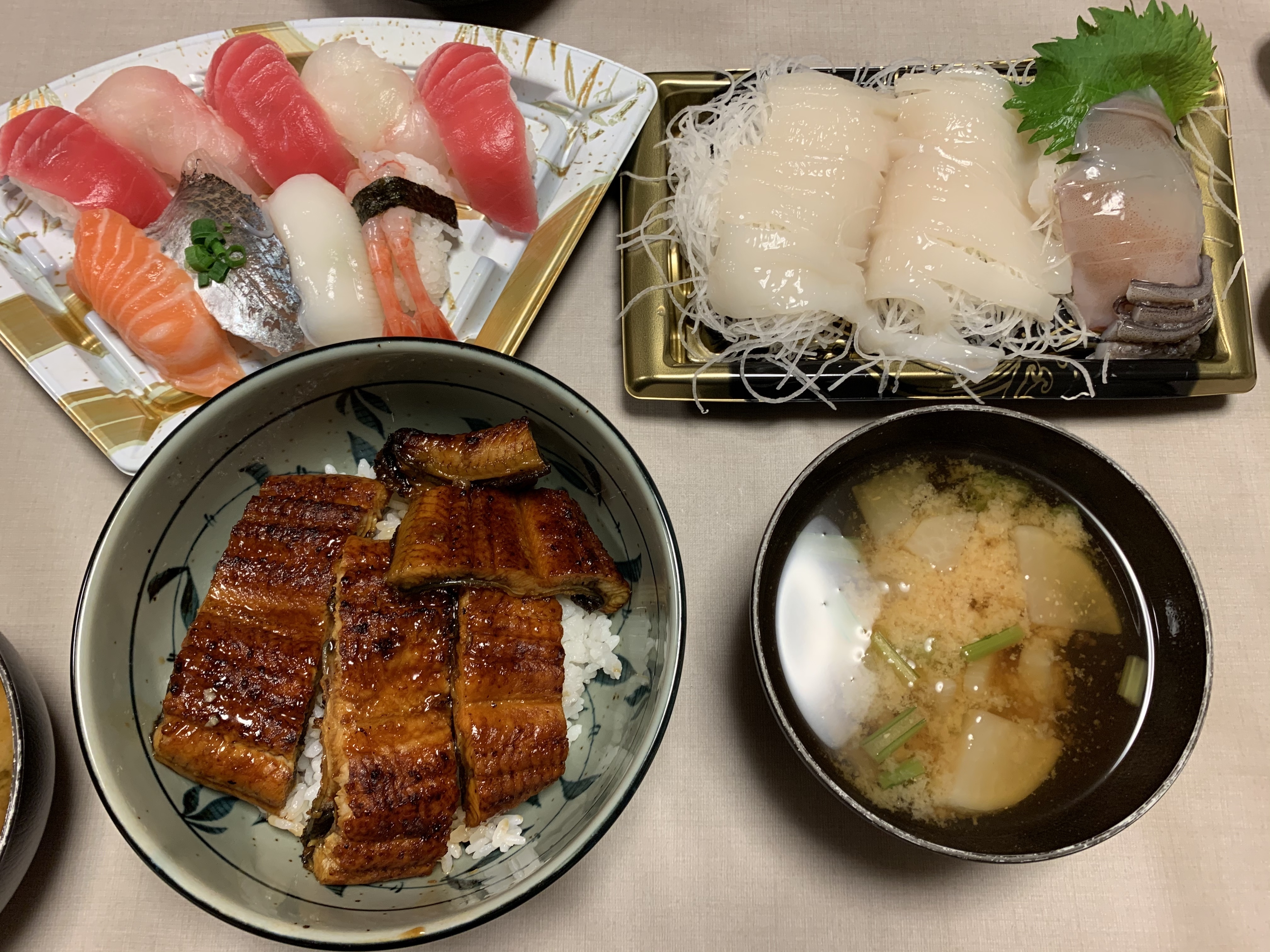 夕飯は、子供の日なので、角上魚類でうなぎ、刺身、寿司を購入しました!!