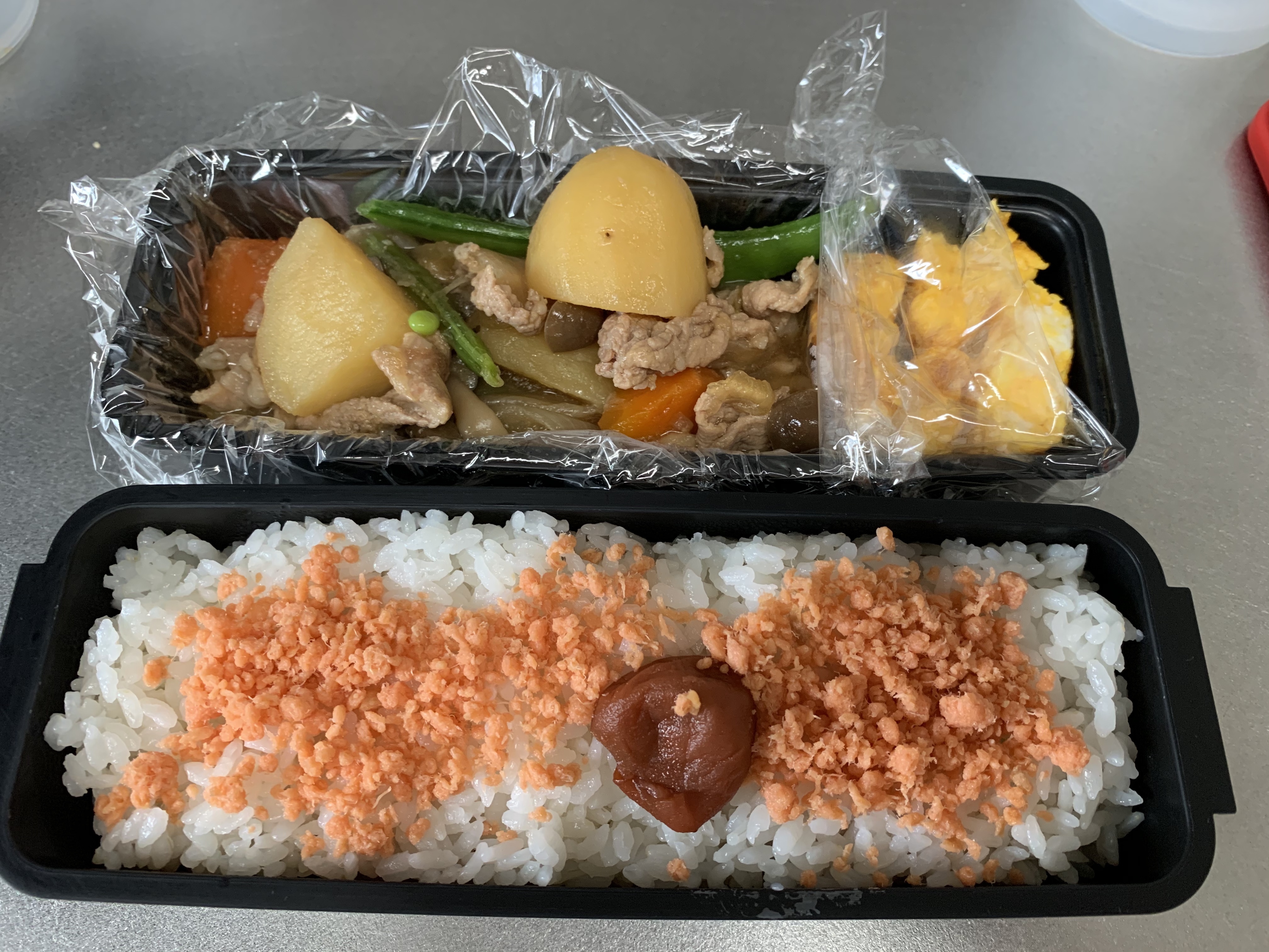 お昼は、肉じゃが弁当。