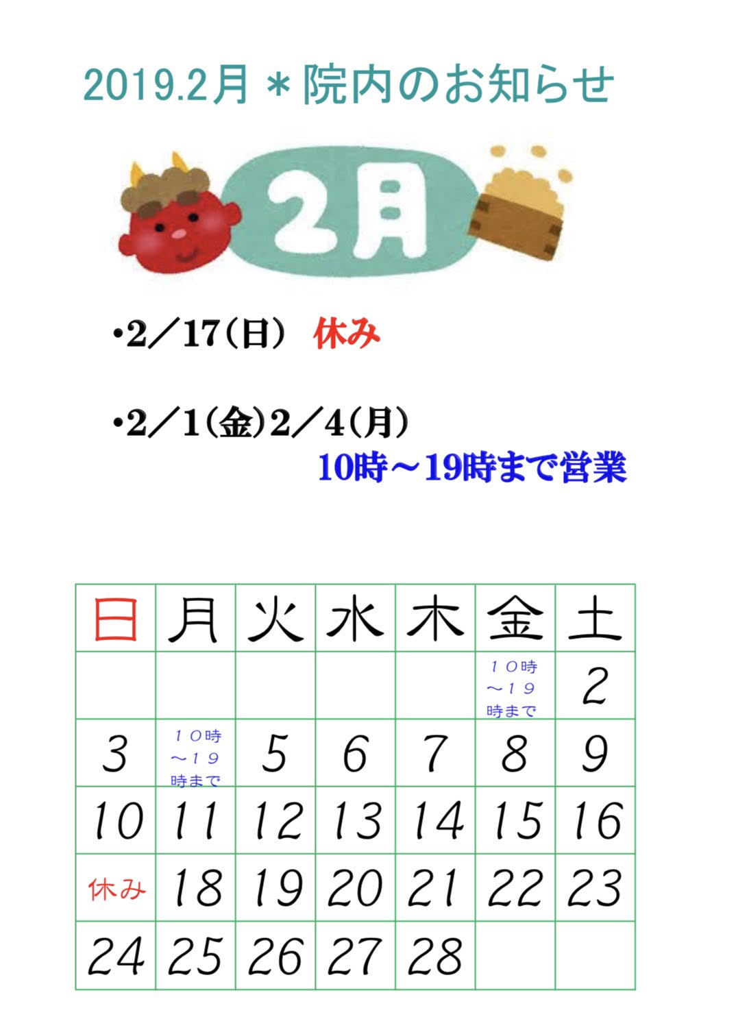 ・2/1(金)、2/4(月) 10〜19時まで営業