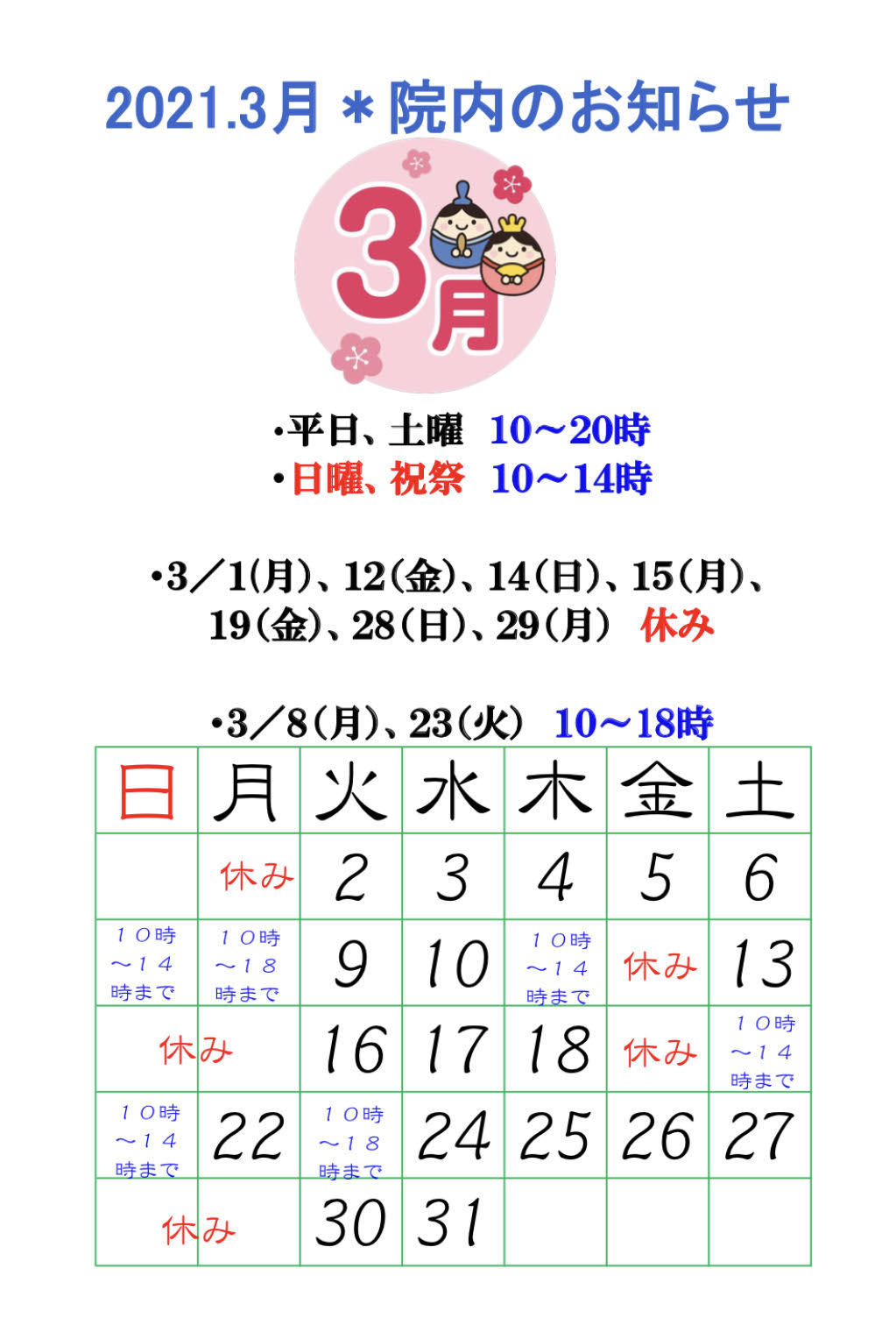 【3月院内のお知らせ】
