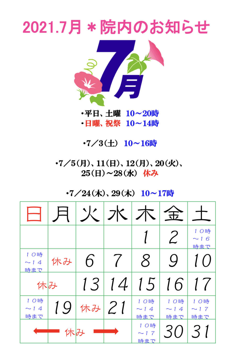 ・7/5(月)、11(日)、12(月)、20(火)、25(日)~28(水) 休み