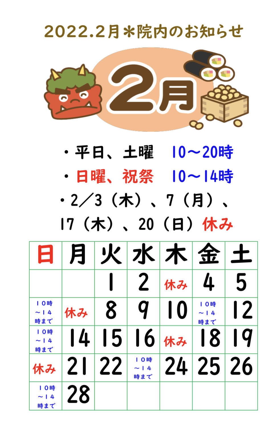 ・2/3(木)、7(月)、17(木)、20(日)休み