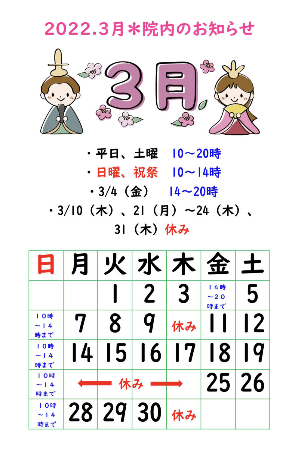 ・3/10(木)、21(月)~24(木)、31(木)休み