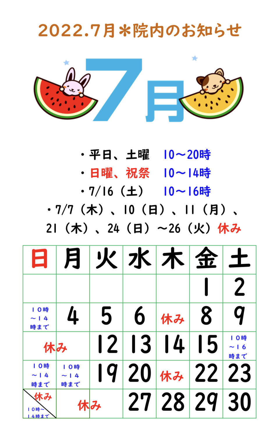 【2022.7月院内のお知らせ】