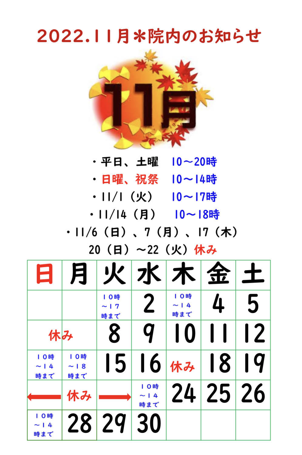 【2022.11月院内のお知らせ】
