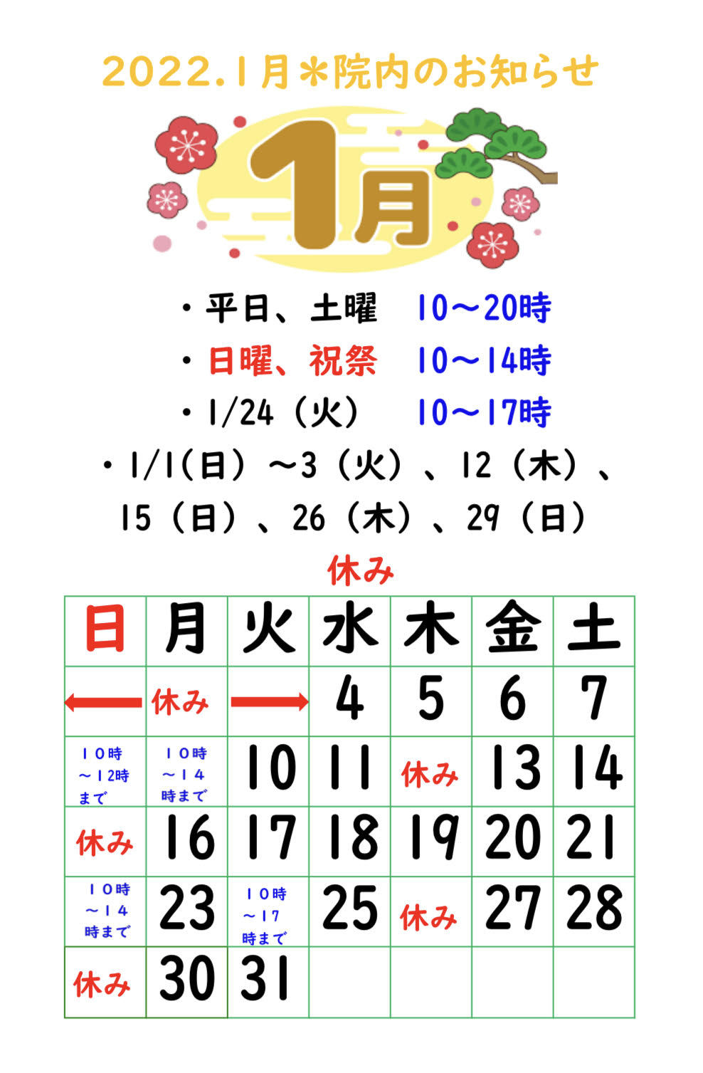 ・1/1(日)~3(火)、12(木)、15(日)、26(木)、29(日) 休み