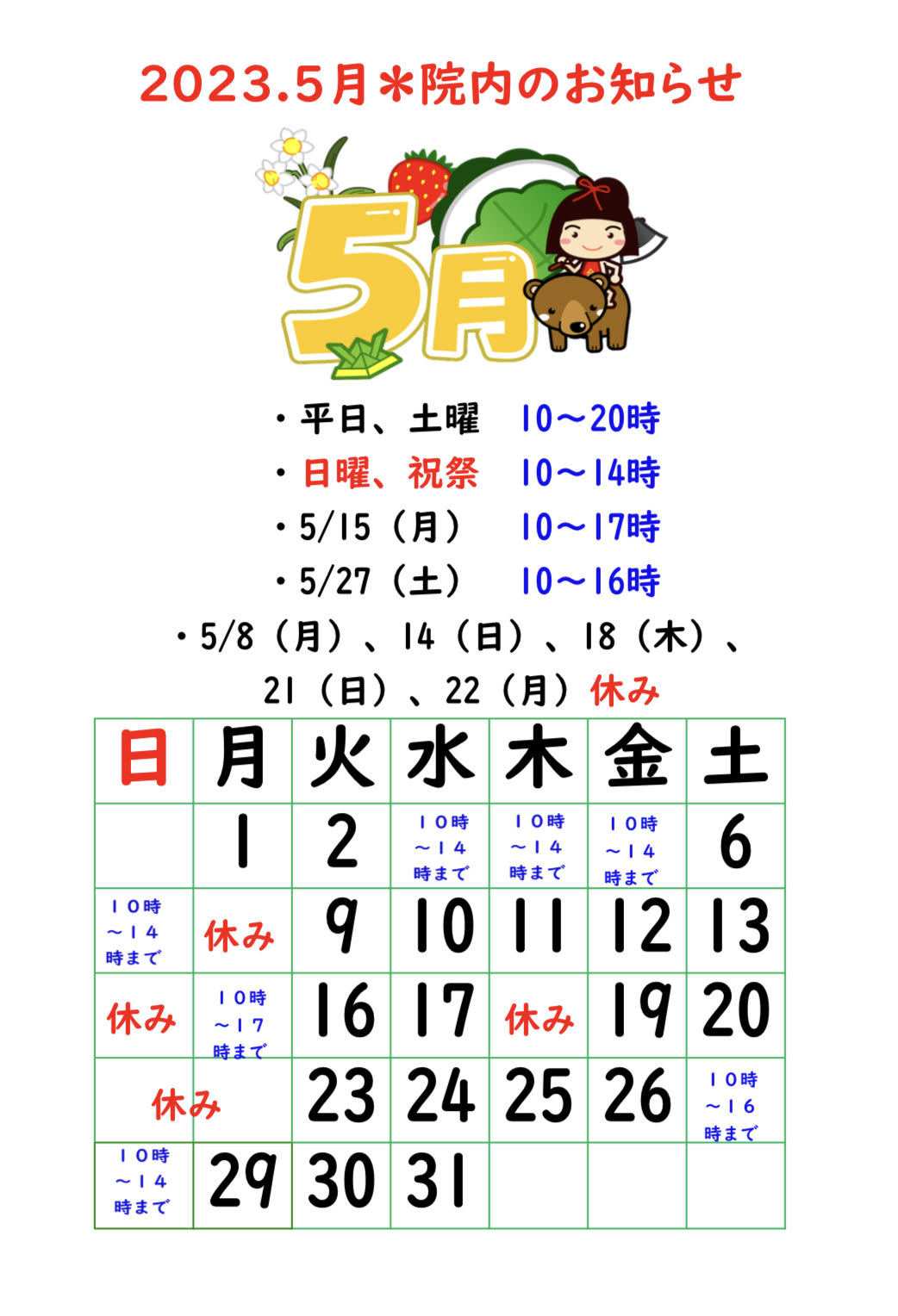 【2023.5月院内のお知らせ】