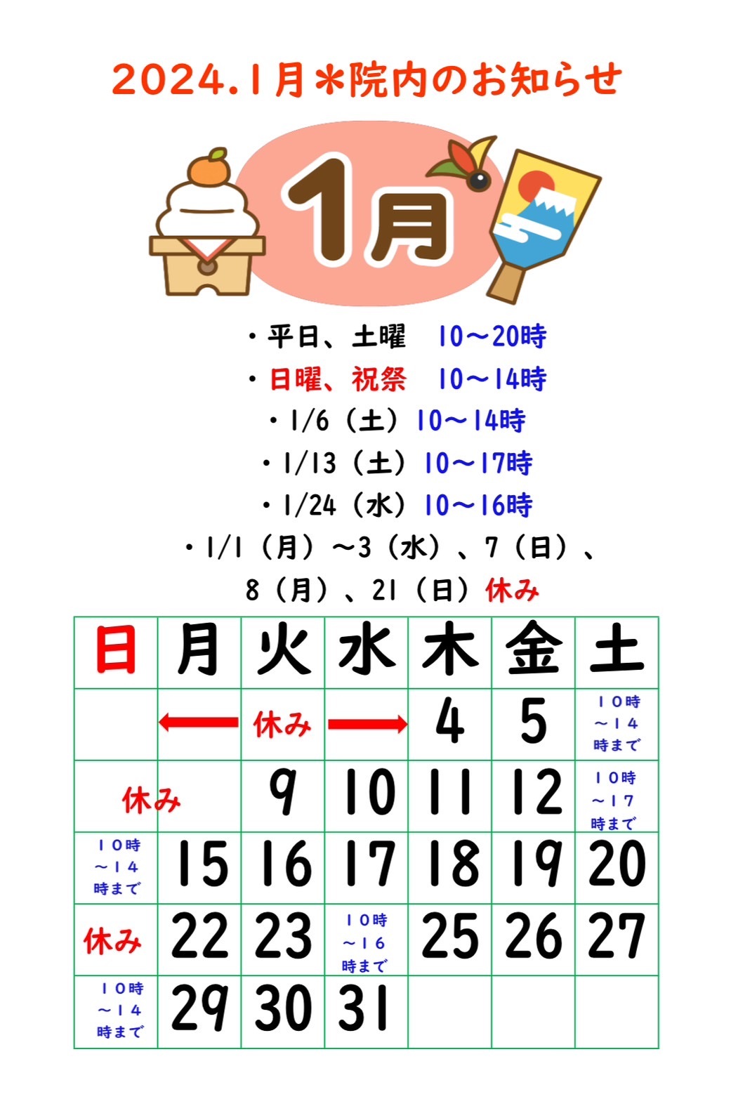 ・1/1(月)~3(水)、7(日)、8(月)、21(日) 休み