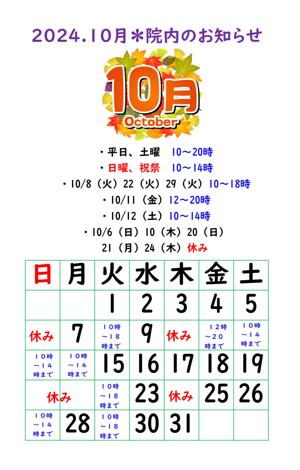 【2024.10月院内のお知らせ】